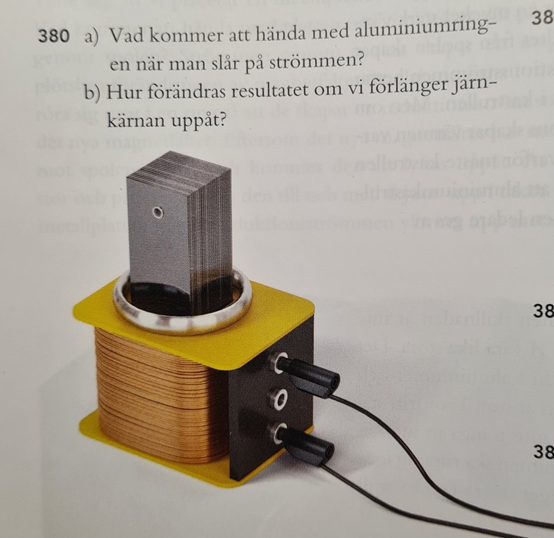 Okej, men om vi tar en titt på den här uppgiften med en aluminiumring som omsluter järnkärnan på en spole.