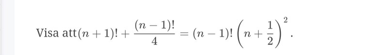 Nej, bryt ut (n-1)! i vänsterledet. Vad blir den andra faktorn i VL?