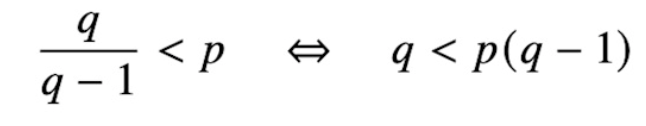 Jo, men hur vet man att man ska dela med just q-1, vad är det för resonemang som leder till det beslutet. Varför inte P+2 eller vad som helst. Eller varför multiplicerar jag för den delen inte q med p-1 eller... Något annat.