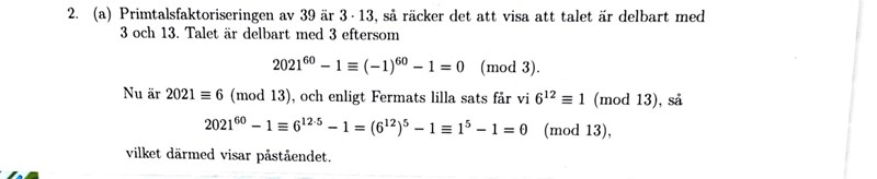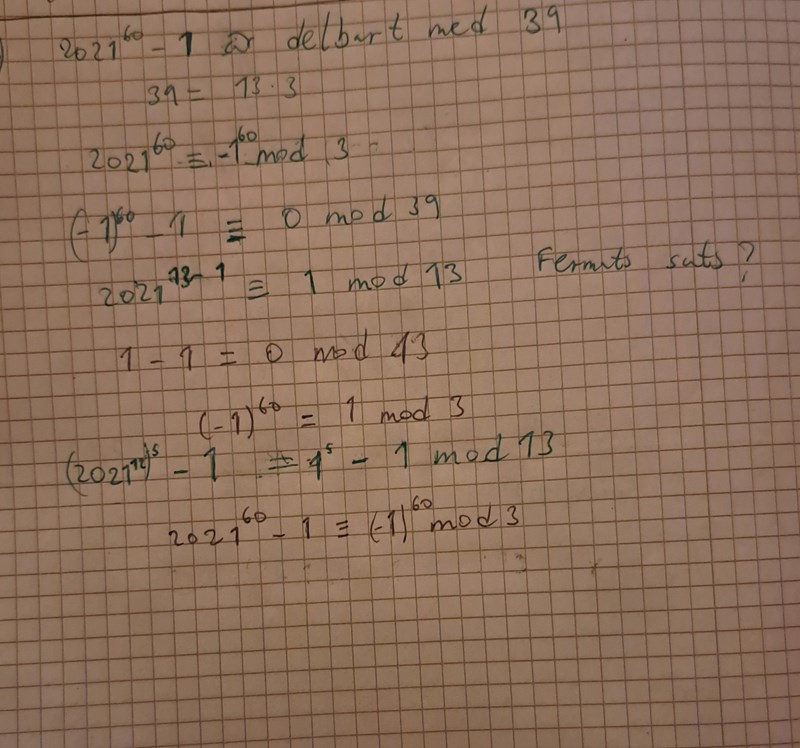 (4*500+21)^60 =1 mod(39). Jag har svårt för såna uppgifter tyvärr