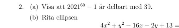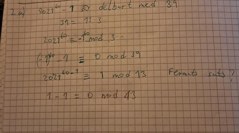 Visa att 2021^60 -1 är delbart med 39