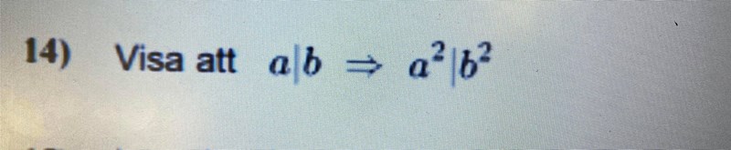 Jag vet inte om induktionsbevis är tillämpbart, men joculators metod är åtminstone enklare och troligen den avsedda. Idén är att använda den första utsagan (a|b) för att skriva ett uttryck för b, och sen använda det uttrycket för att göra ett uttryck för b2. Om det uttrycket innehåller faktorn a2 (och alla andra faktorer är heltal) så innebär det att b2 är delbart med a2, vilket är vad a2|b2 betyder.