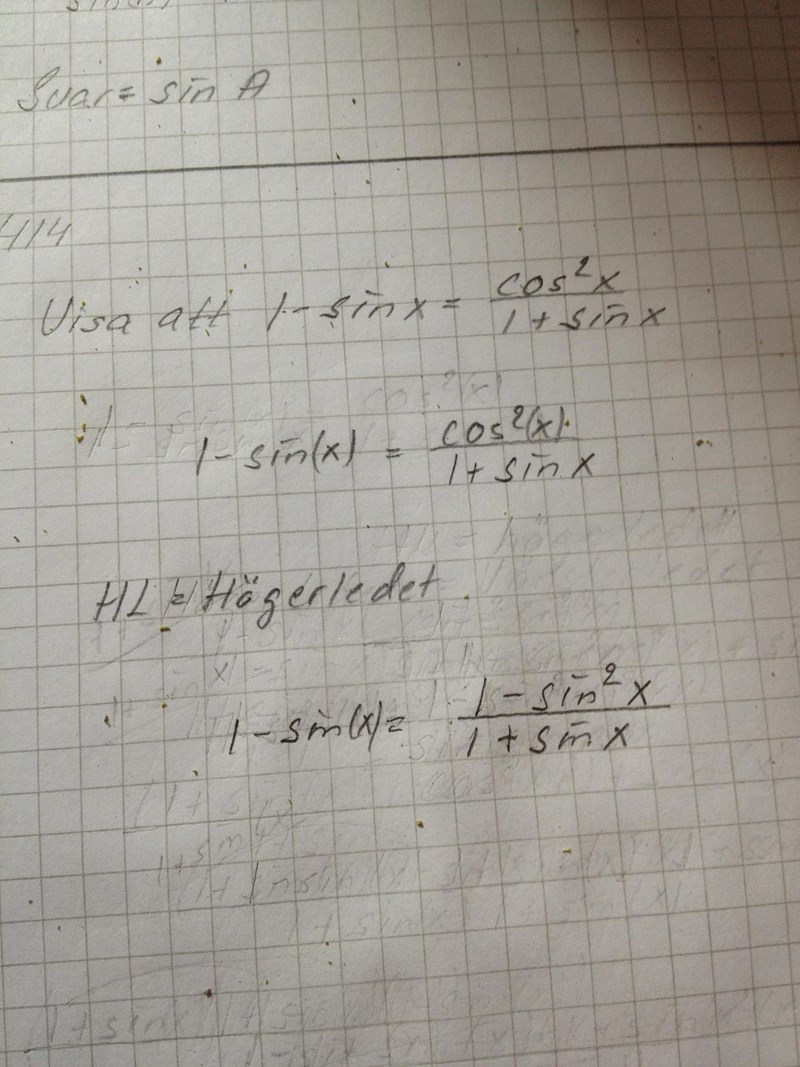 Börja med högerledet. Använd trig.ettan på täljaren. Använd konjugatregeln på nämnaren. Förenkla.