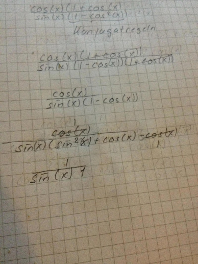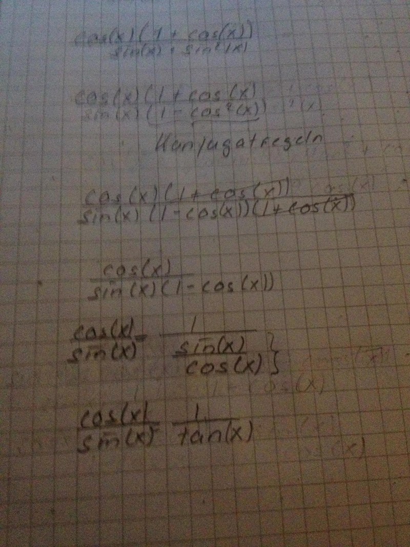 Jag förstår inte var plockar du ettan ifrån och sedan dividerar du 1/ sin(x)/ cos(x)