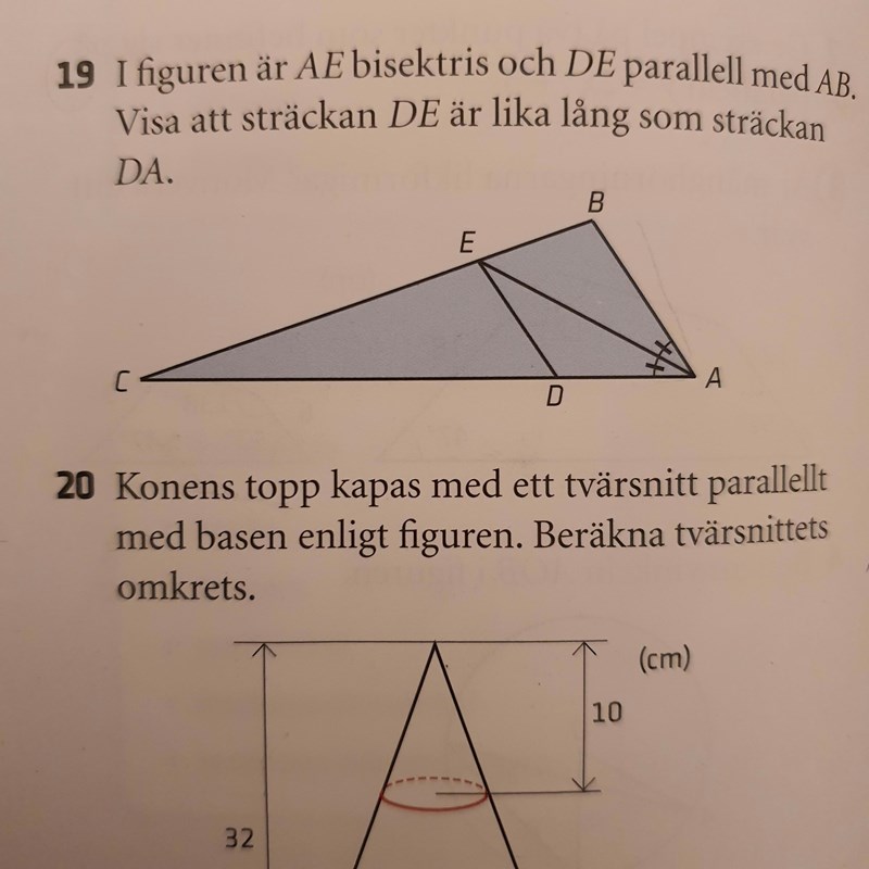 Jag kommer fram genom bisekrissatsen till att CA/CD = AB/DE och därav (CD + DA)/CD = AB/DE