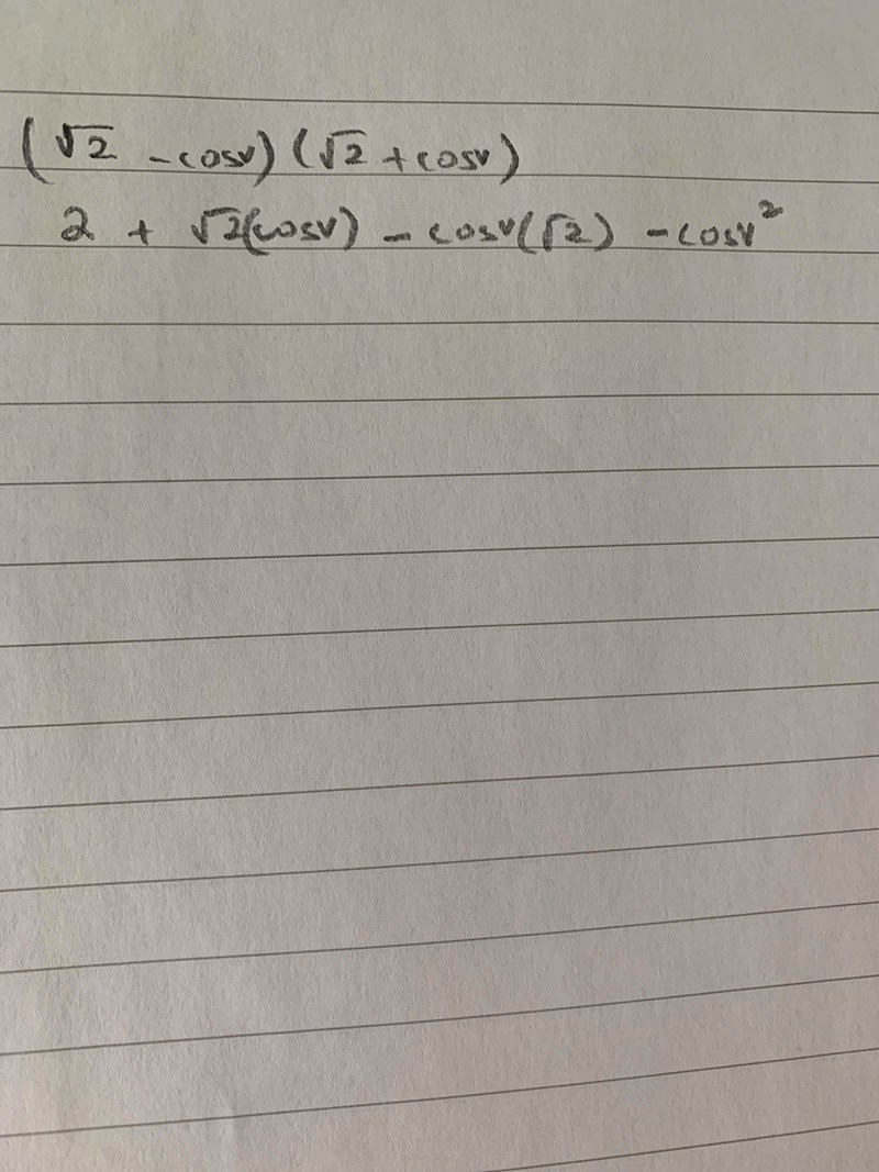 Har försökt multiplicera vänster ekvationen men kommer inte längre fram. Jag vet man ska använda trigonometriska ettan