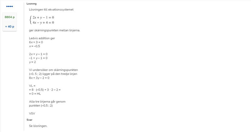 Vid kontroll så stämmer det även för (3), och således är punkten som alla linjer går igenom!