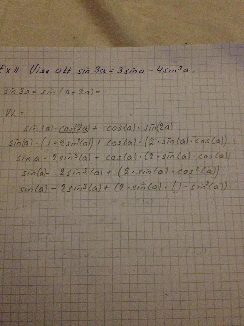 sin(3a) = sin(a+2a) = {additionsformeln för sinus} = ...