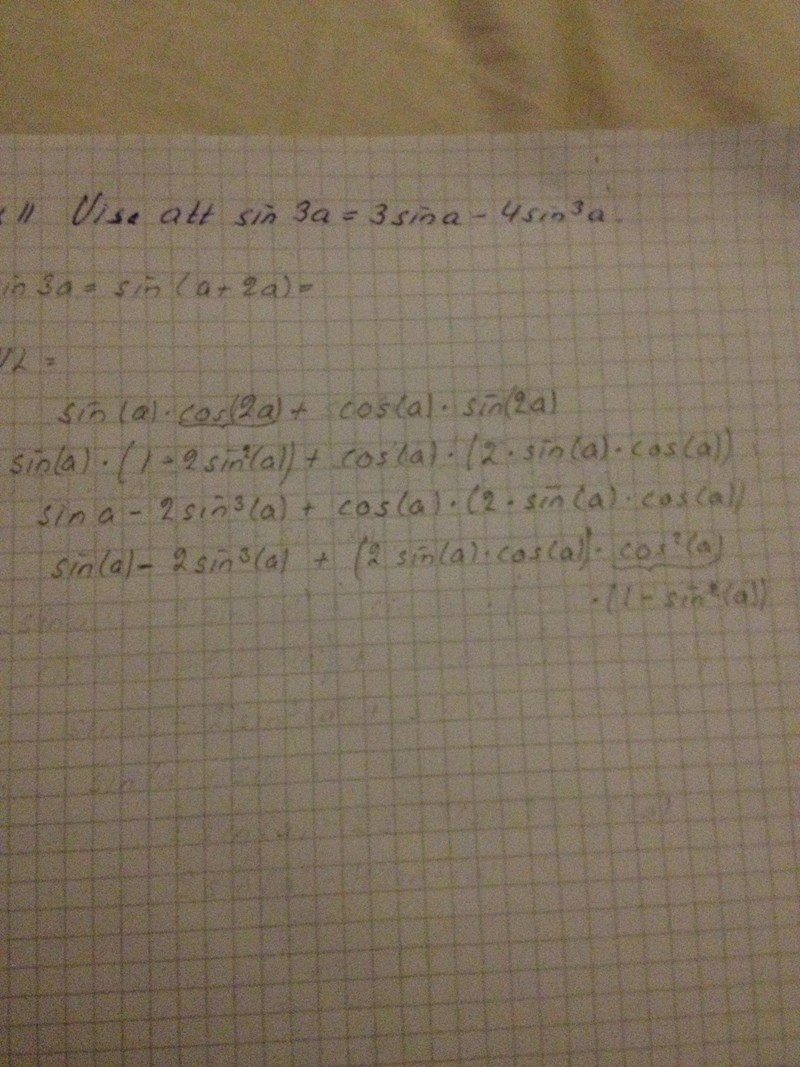 sin(3a) = sin(a+2a) = {additionsformel för sinus} =