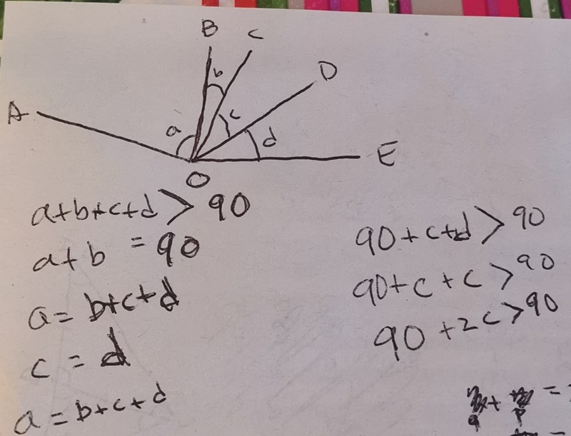 a+b+c+d >90o (eftersom vinkeln AOE är trubbig)