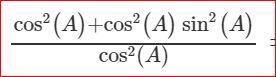 2. "Hjälp med formeleditorn". Där skriver du att du behöver hjälp med att skriva uttrycket cos^2(A) + cos^2(A)*(sin^2(A)/cos^2(A)) i formeleditorn och att när du försöker så får du bara följande, vilket är fel: