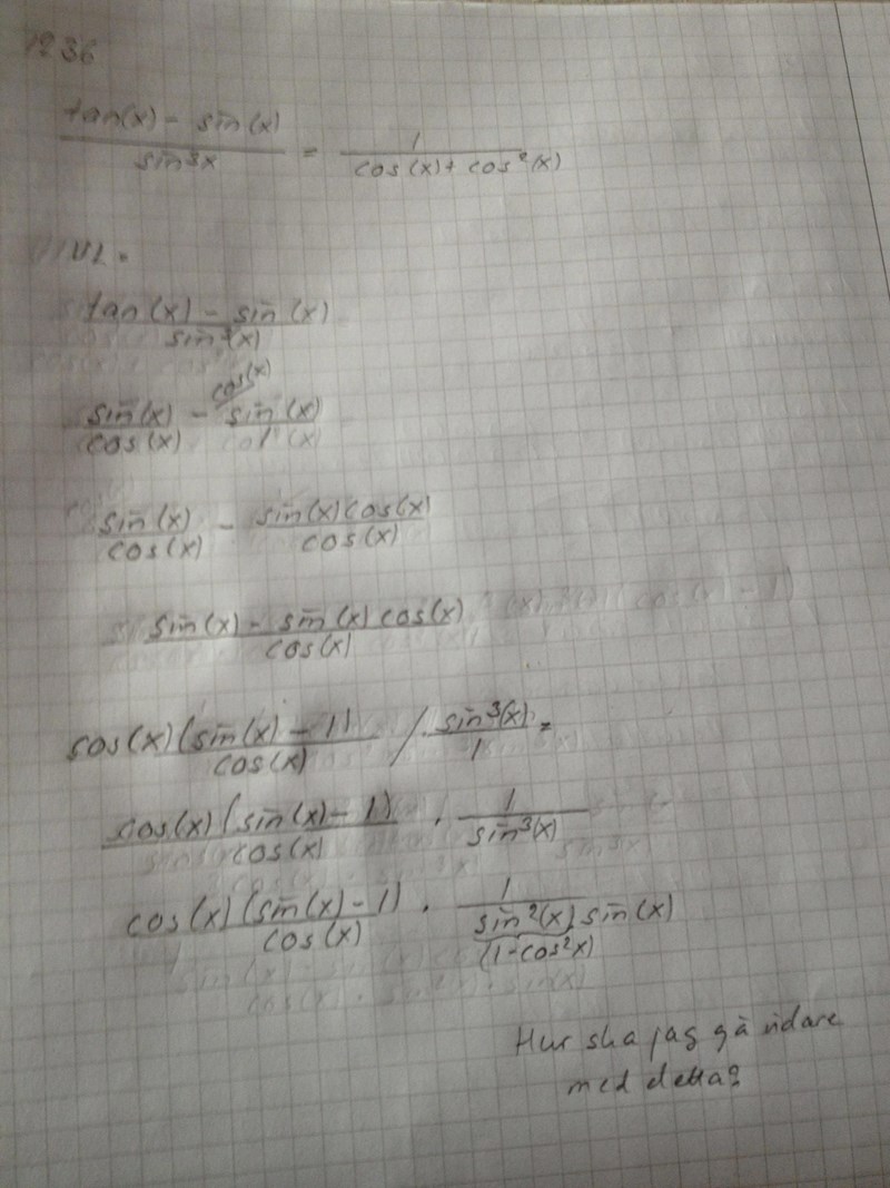 sin(x) - sin(x)cos(x)cos(x)=sin(x)(1 - cos(x))cos(x)