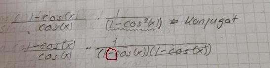 där jag använt Konjugatregeln på uttrycket (1-cos2x) (1-\cos^2 x)