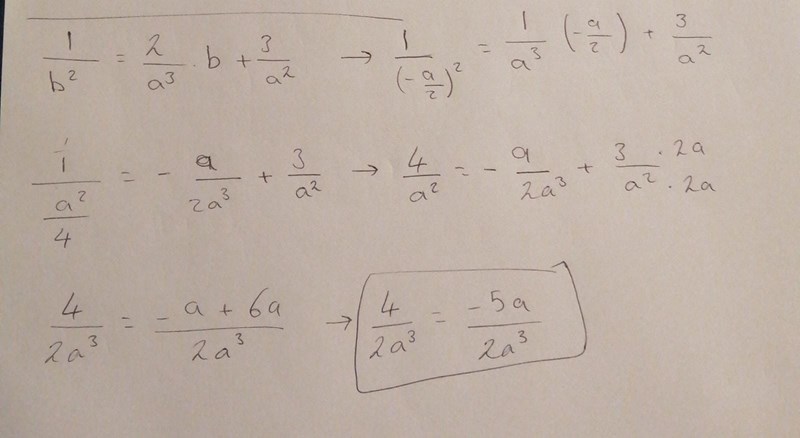 Bilden är fel den måste vara 1b2=-2a3×b+3a2som jag skrev i #6