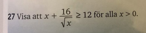 derivatan blev 1 - 8x^(-1/2), tänkte jag rätt?
