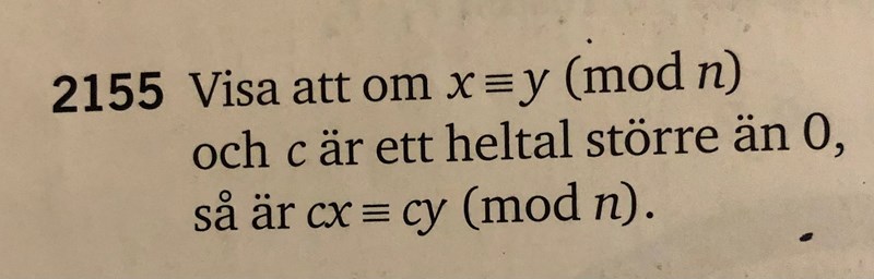 Visa att Om x=-y(modn) så är cx=-cy(modn)!
