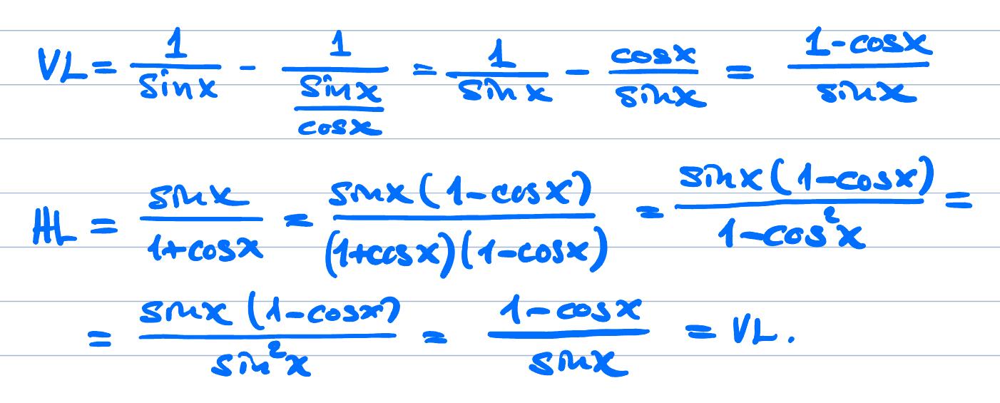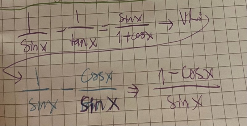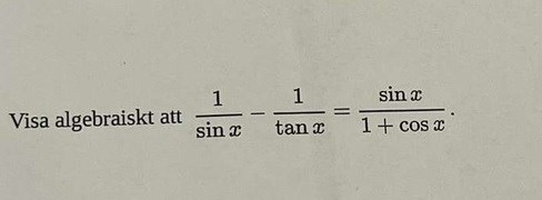 MrPotatohead skrev:Skriv om tanx=sinx/cosx och skriv hela VL på ett gemensamt bråkstreck.