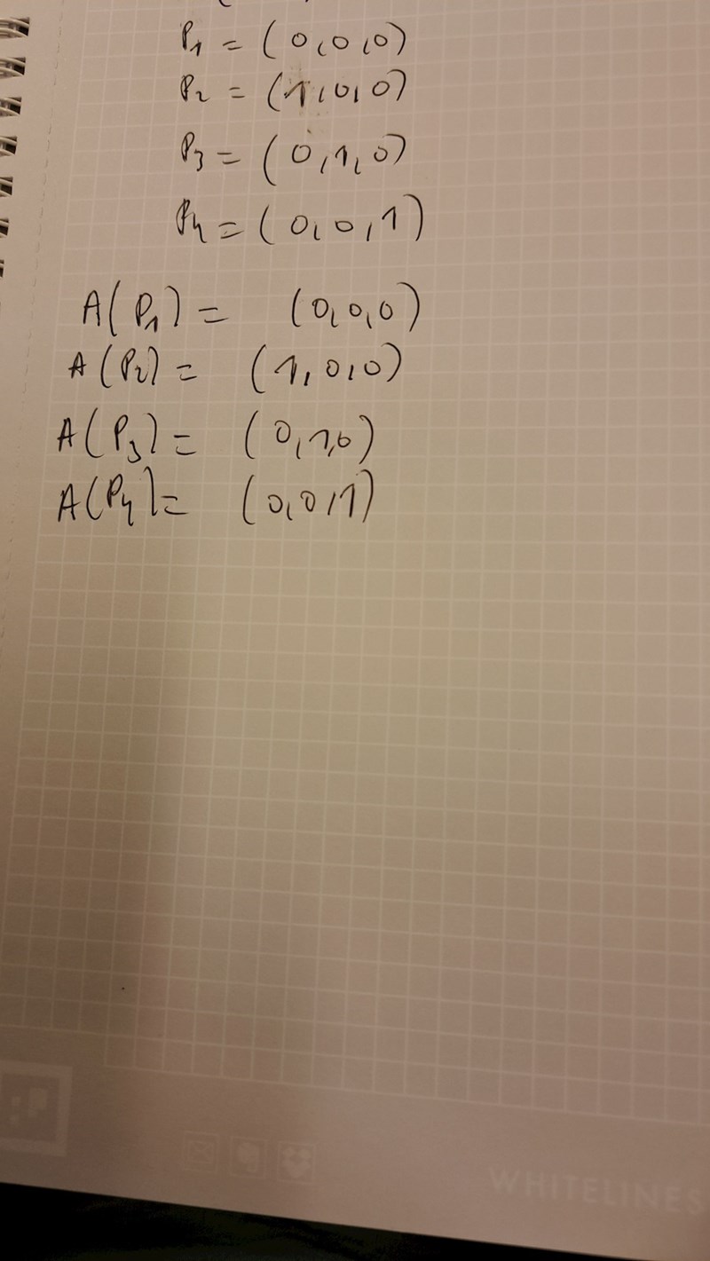 Visa att A avbildar på tetraedern på en triangel i R^3