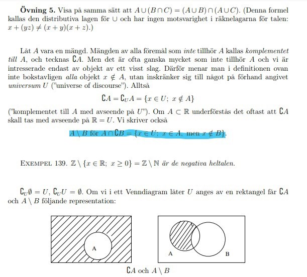 Aha och det är ju det som står i VL, alltså är VL en delmängd i Högerledet.
