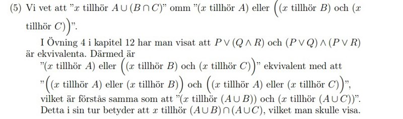 Visa att A ∪ (B ∩ C) = (A ∪ B) ∩ (A ∪ C)