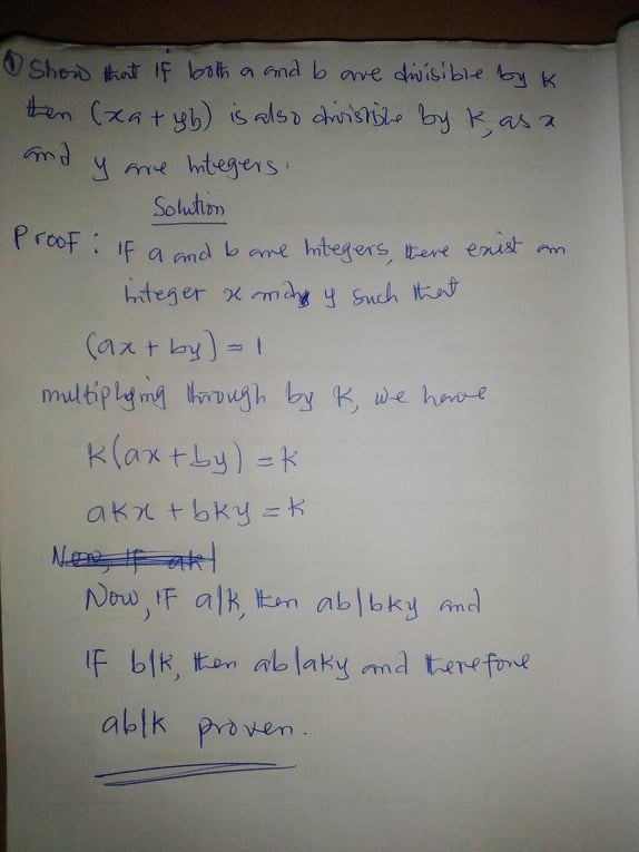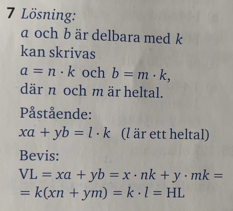 Visa att om både a och b är delbara med k, så är även (xa + yb) delbart med k, då x och y är heltal.