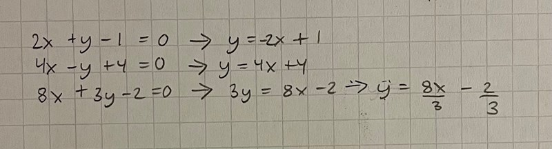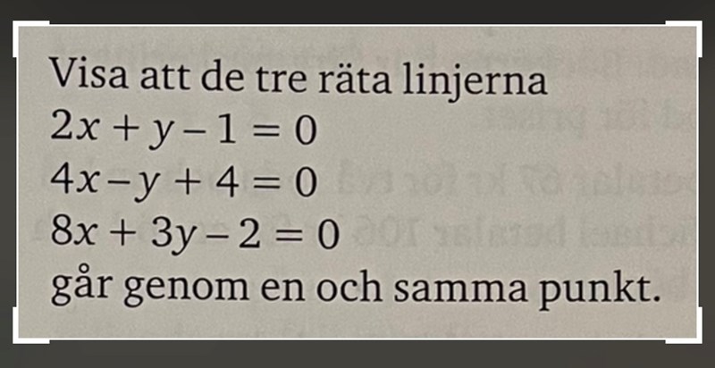 Nu kan du börja med att hitta var två av linjerna skär varandra. Var skär exempelvis linjen ?
