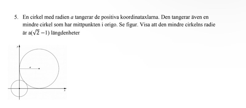 Visa att den mindre cirkelns radie är a(Roten ur/2-1) längdenheter