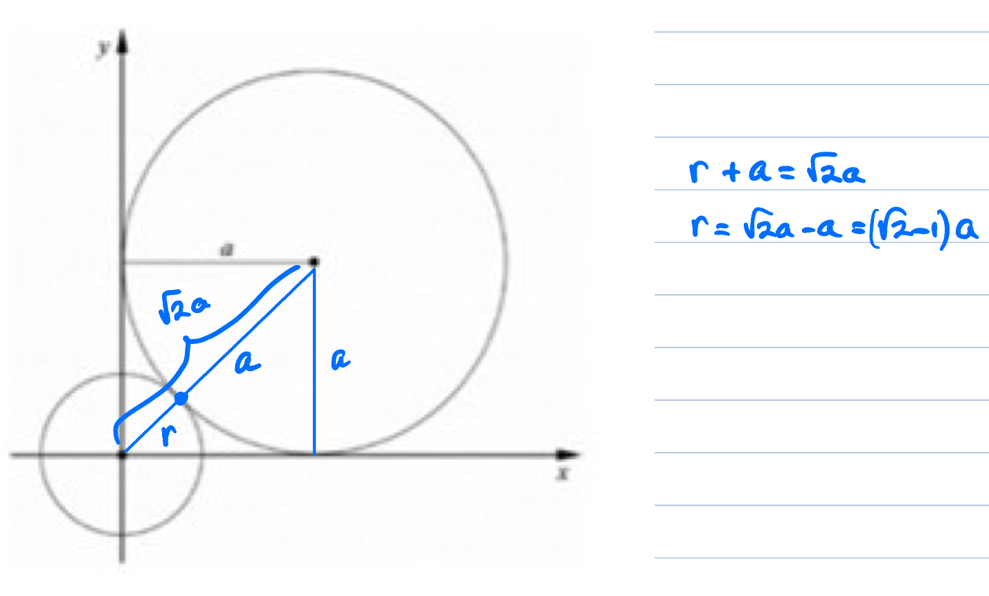 Är du med på att den stora cirkelns mittpunkt har koordinater (a, a)?