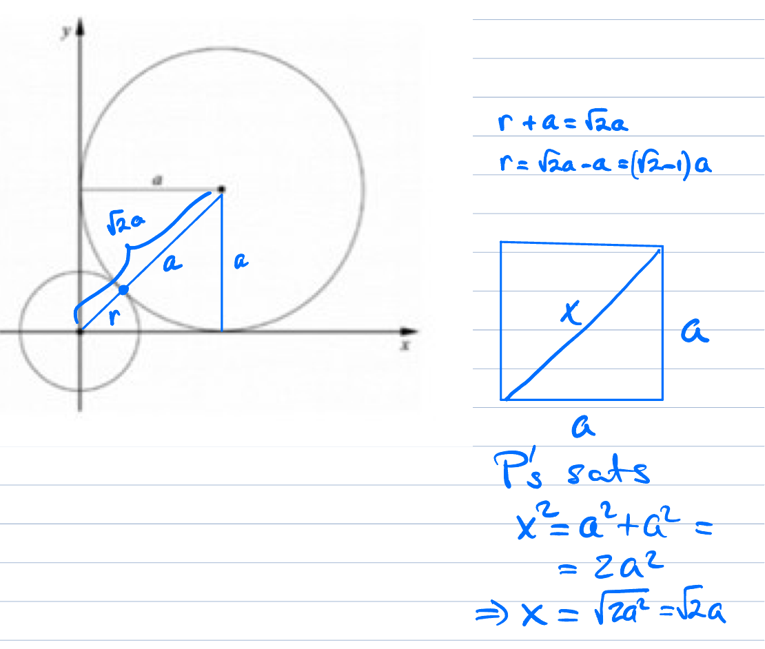 Gud tack för så bra bild och förklaring! Jag undrar bara om du kan förklara hur r+a=roten ur/2a?