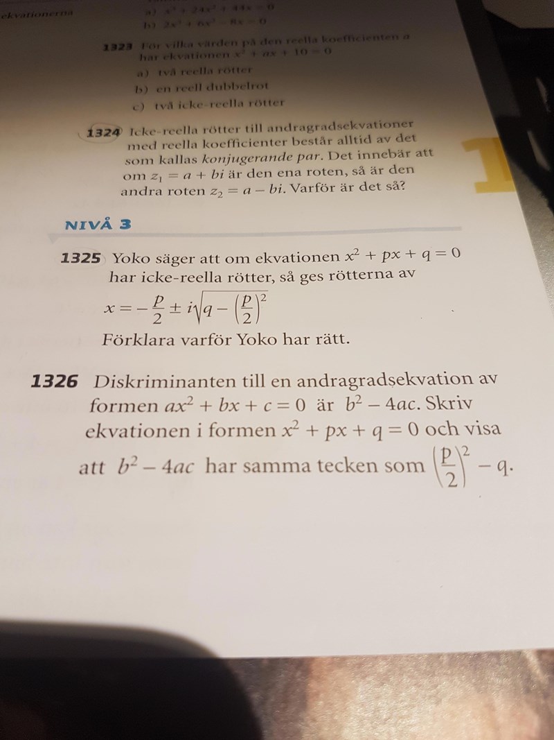 För övrigt så anser jag att det står fel i uppgiften. Diskriminanten är .