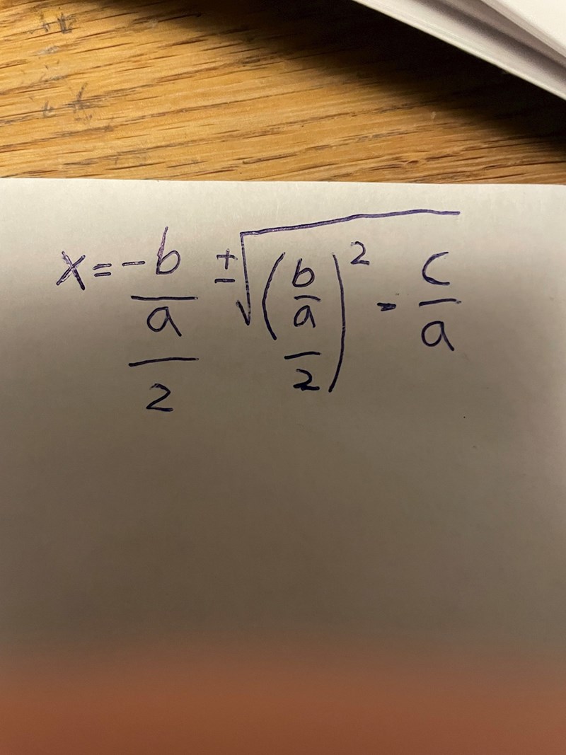 Jag förstår vad jag ska göra men jag grejar inte förenklingen alls. Vad är -(b/a) /2 till att börja med. Jag kan inte tolka uttrycket.