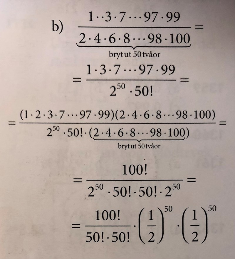 och jag antar att man kan strycka den ena 50! så att det blir 100*99*98...51