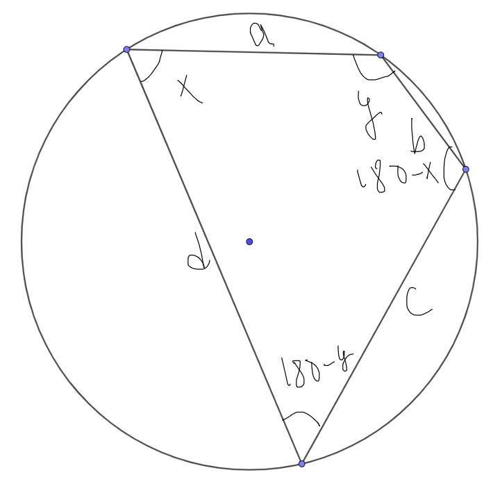 Observera att det finns ett bevis här: https://www.pluggakuten.se/trad/kan-en-konvex-fyrhorning-med-givna-sidlangder-alltid-inskrivas-i-en-cirkel/
