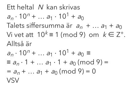 Visa att ett tal N är delbart med 9 om talets siffersumma är delbar med 9.