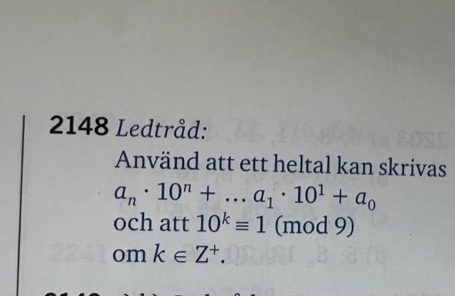 visa att ett tal N är delbart med 9 om talets siffersumma är delbar med 9