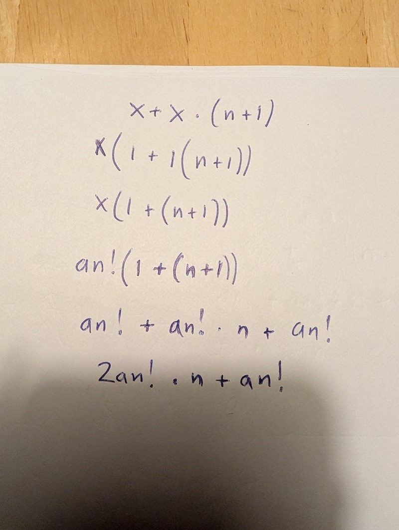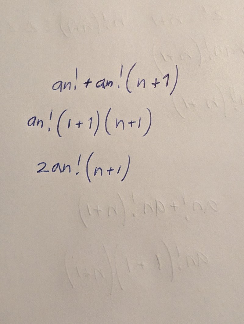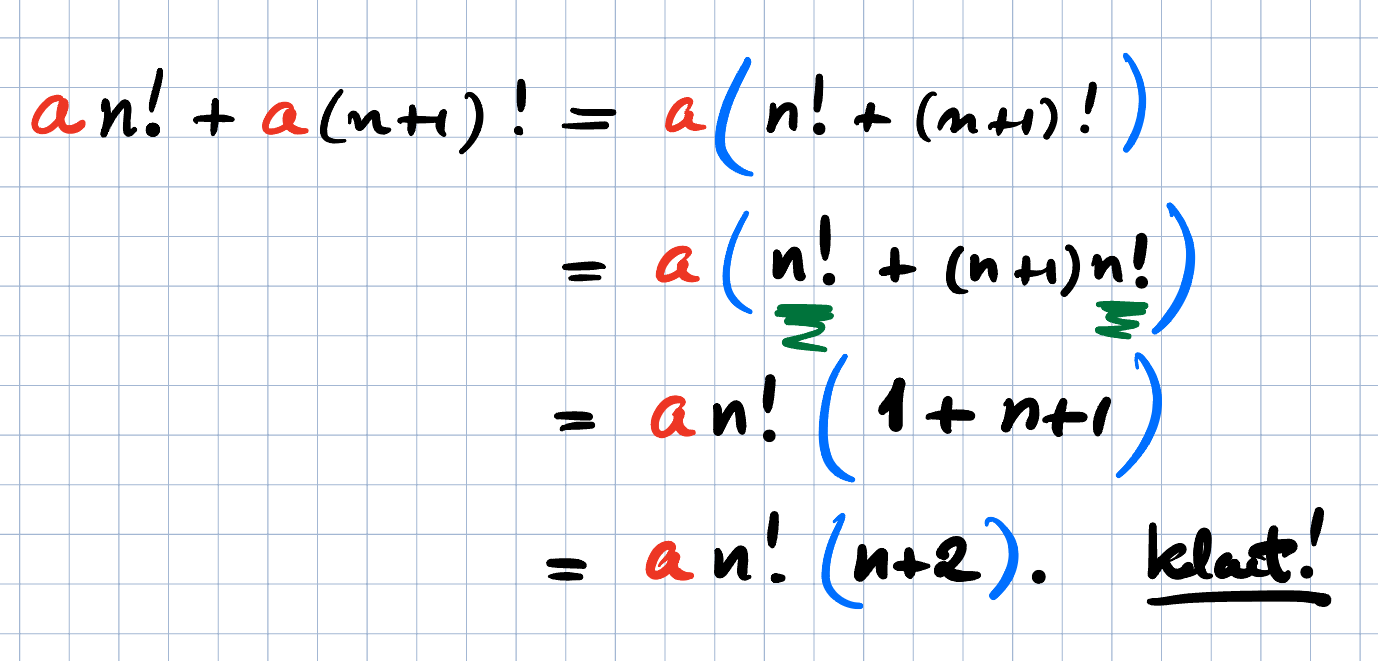 Visa att a×n! + a(n+1)! Kan skrivas som a×n!(n+2).