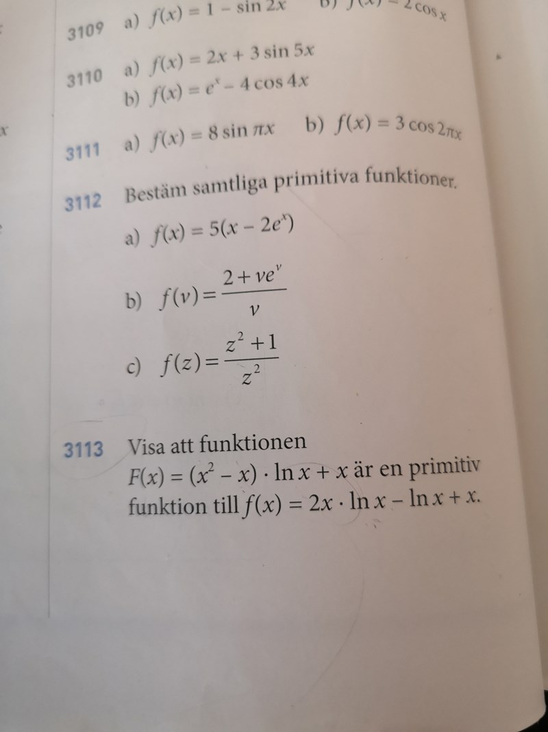 Jag vet att F(x) är en primitiv funktion till f(x) om F'(X) = f(x). Men förstår inte riktigt hur jag ska komma framm till det. Antar att jag bör använda formeln för derivatan av en produkt? Eller ska jag se det som en sammansatt funktion?