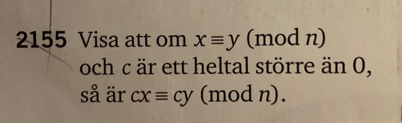 Om cx - cy är delbart med n så är cy ≡ cx (mod n)?