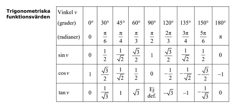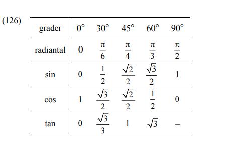 och ta reda på värdena för sinus och cosinus för 30⁰ och 45o, exakt.
