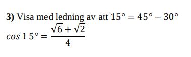 Visa att ledning av att 15⁰ = 45⁰ - 30⁰.....