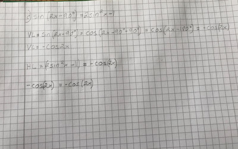 sin(2x - 90) = cos(2x - 90 - 90) = cos(2x - 180) = -cos(2x)