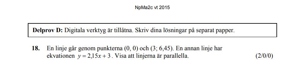 Kan du teckna en ekvation för linjen som går genom de två punkterna?