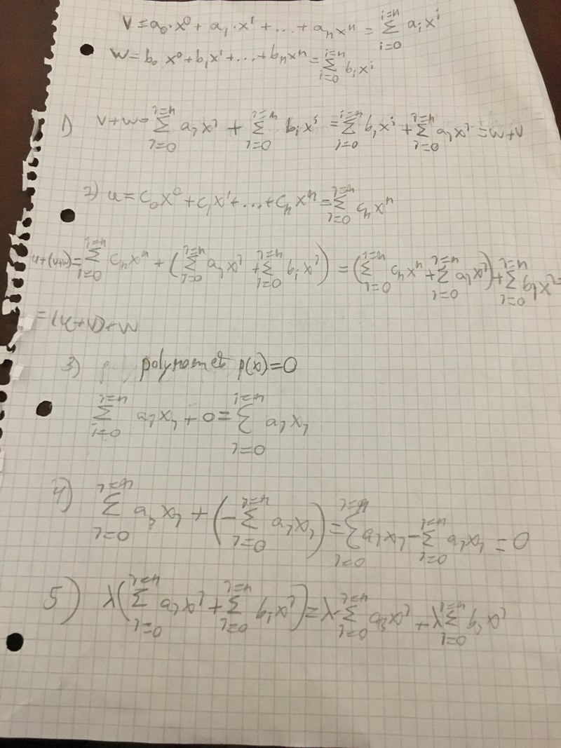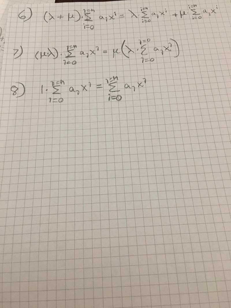 Det kan du, men det primära syftet är att använda dem för att visa att V är sluten under polynomaddition och under skalärmultiplikation.