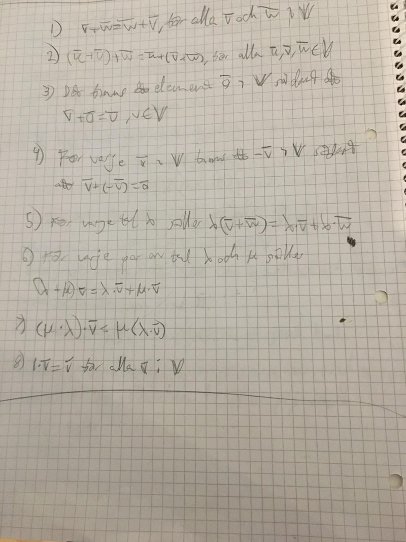 Visa att vektorn w = au + bv ligger i vektorrummet om u och v ligger i vektorrummet.
