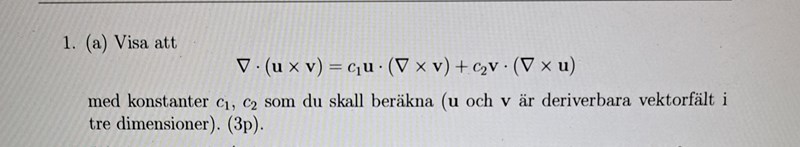Visa att nabla*(u×v) med c1 och c2 okända