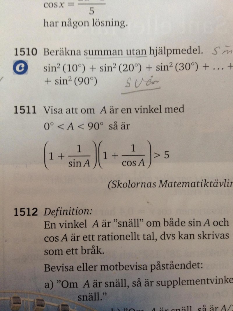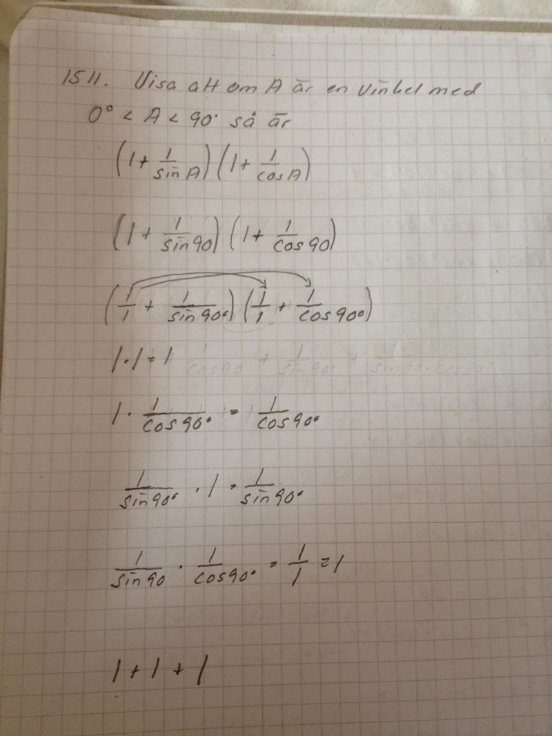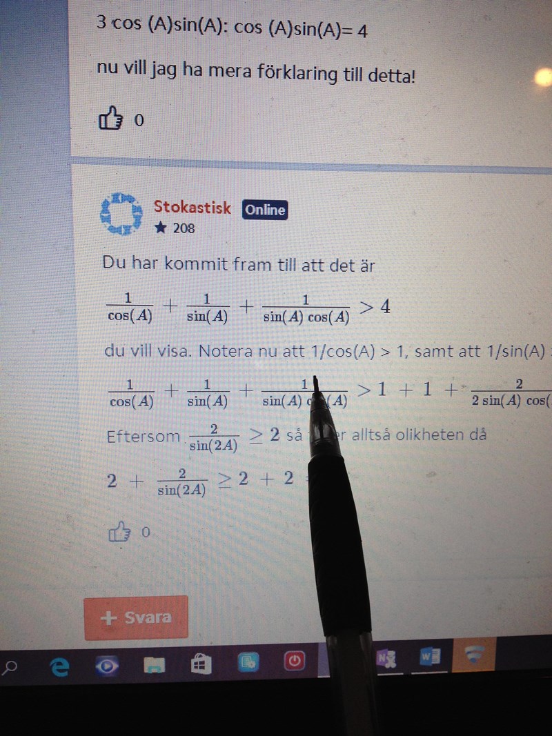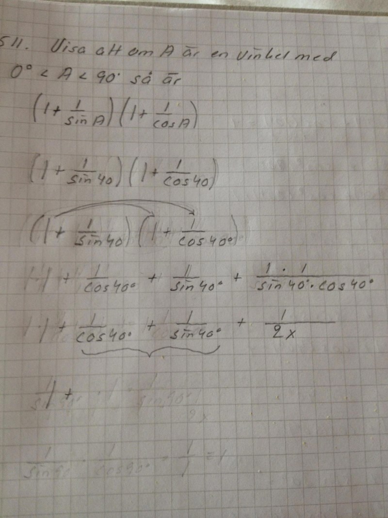 du vill visa. Notera nu att 1/cos(A) > 1, samt att 1/sin(A) > 1, detta innebär alltså att