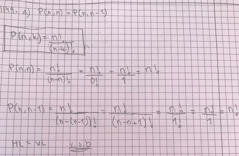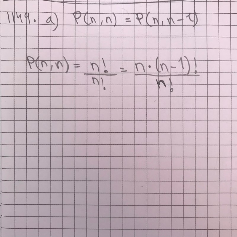 Visa att P(n,n) = P(n,n-1) genom att förenkla uttrycket och använda multiplikationsprincipen