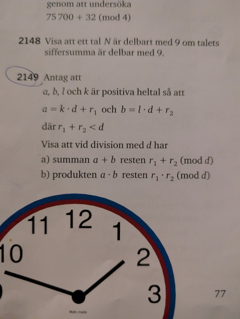 Dkcre skrev:Okej 👍 men vad är k, i och d för någonting och hur visar man att ab har resten r1r2 mod genom att ställa upp det sådär? Du skrev väl i princip det i förra tråden kanske iofs.