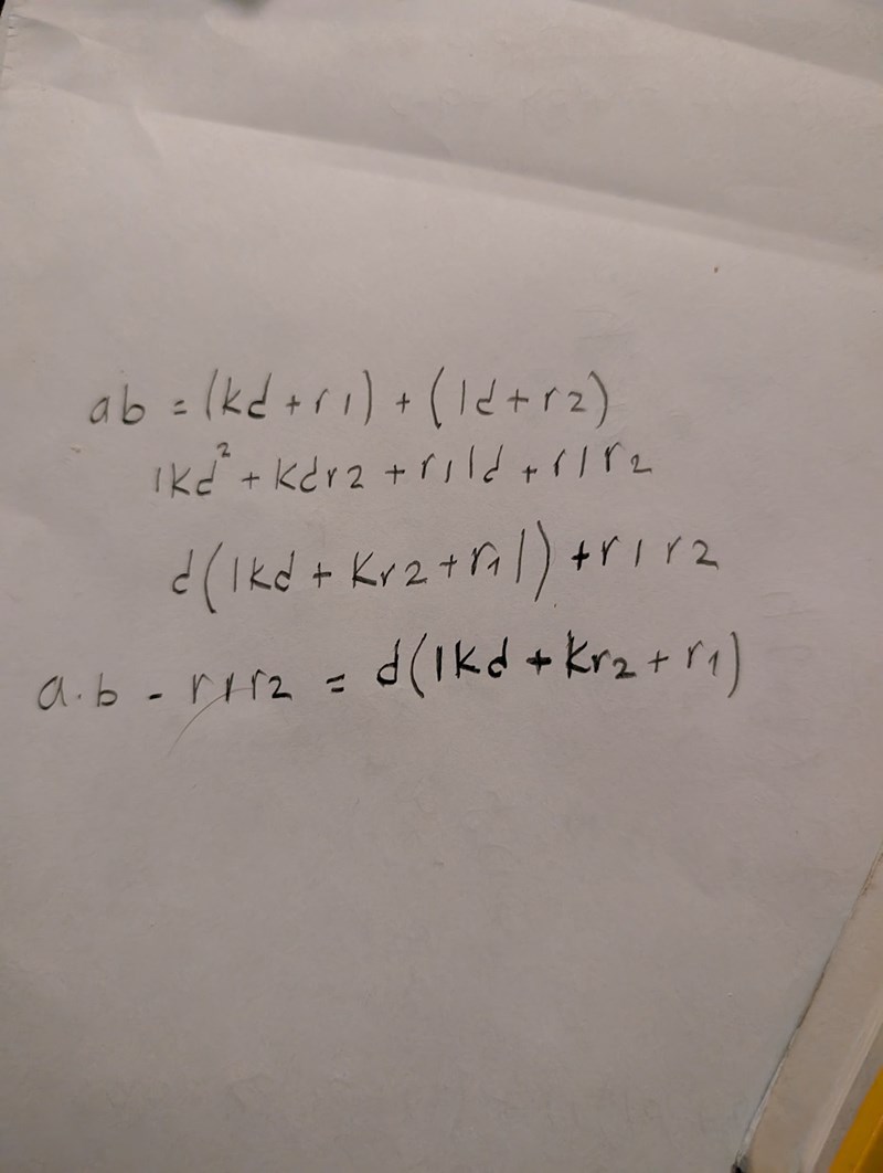Okej 👍 men vad är k, i och d för någonting och hur visar man att ab har resten r1r2 mod genom att ställa upp det sådär? Du skrev väl i princip det i förra tråden kanske iofs.