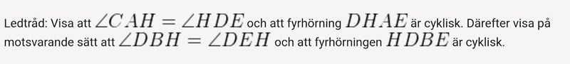 Visa att punkterna B,D,H,A,E ligger på en cirkel.